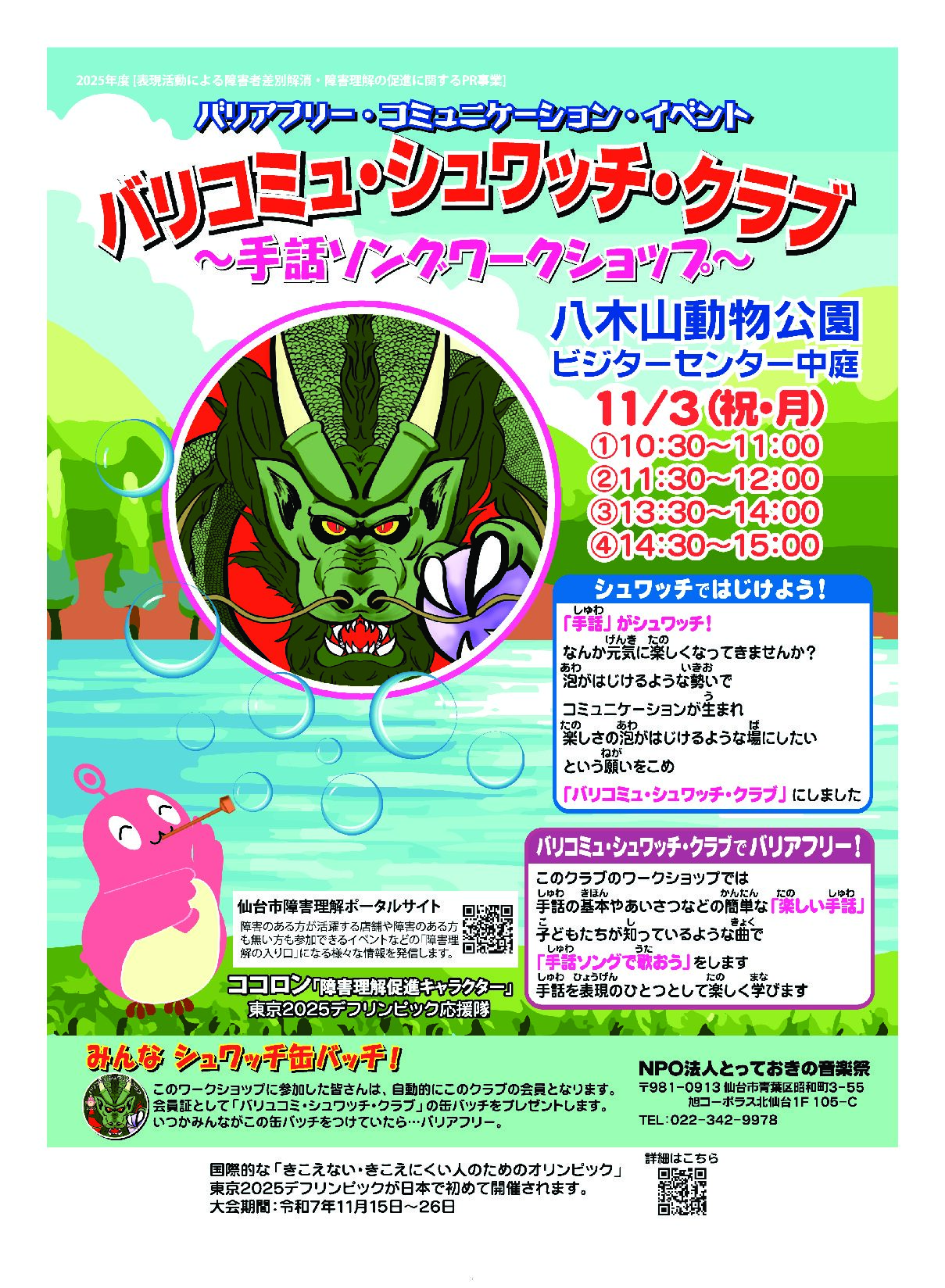 太白区 開催日:2025/11/3 10:00 ~ 15:00 バリコミュ・シュワッチ・クラブ~手話ソングワークショップ~