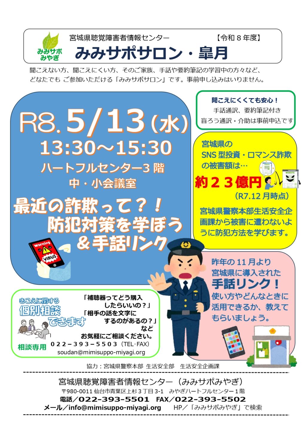 みみサポサロン・皐月「最新の詐欺って?!防犯対策を学ぼう&手話リンク」