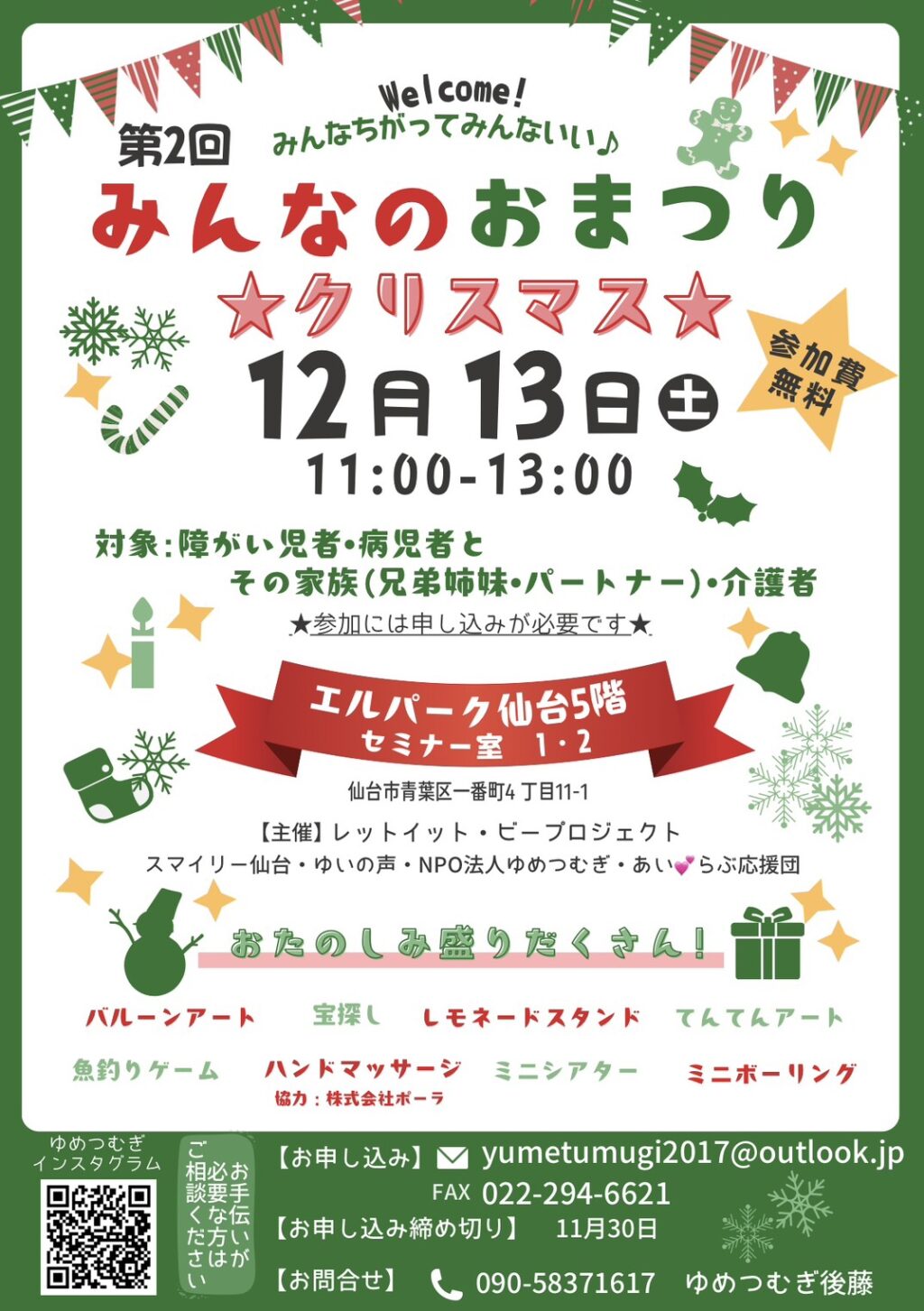 申込期限11/30 ゆめつむぎインスタグラムでも申し込み可能