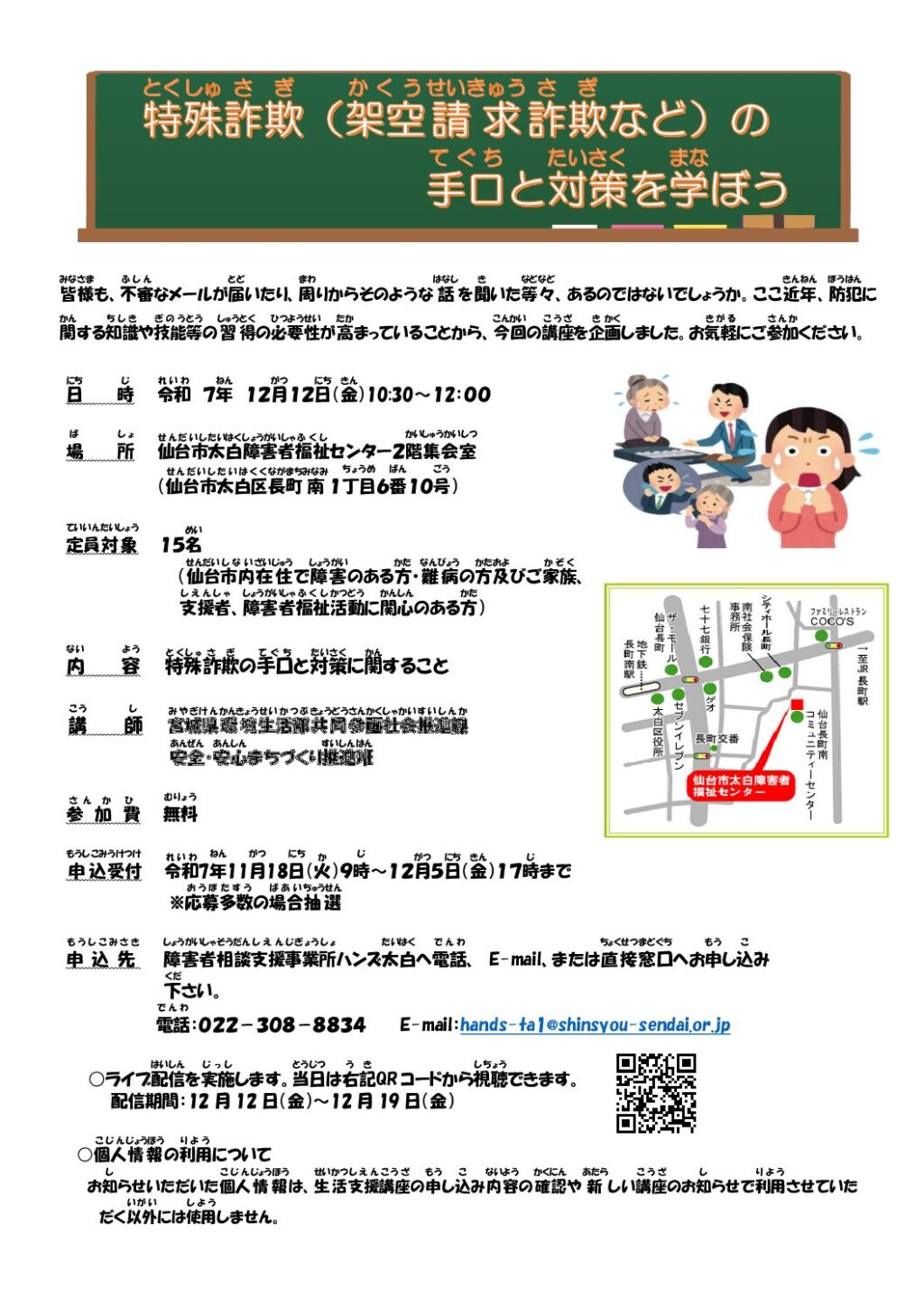 令和7年度生活支援講座「特殊詐欺(架空請求詐欺など)の手口と対策を学ぼう」