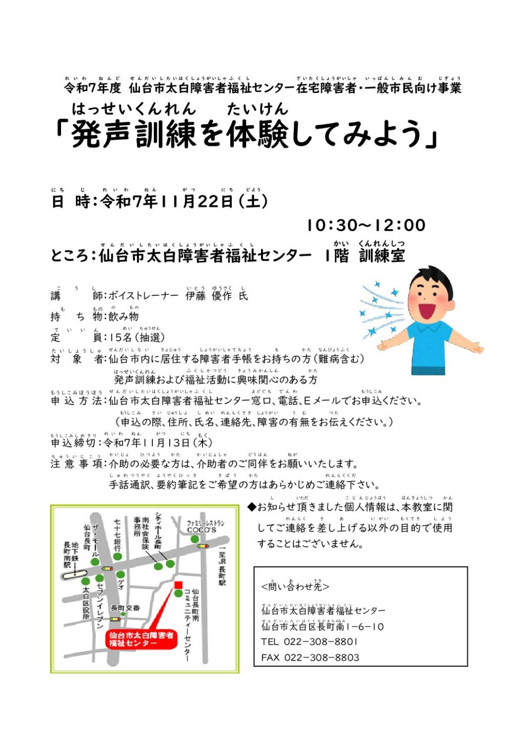 | その他 | お問い合わせ先:仙台市太白障害者福祉センター ①申込締め切り令和7年11月13日(木) |