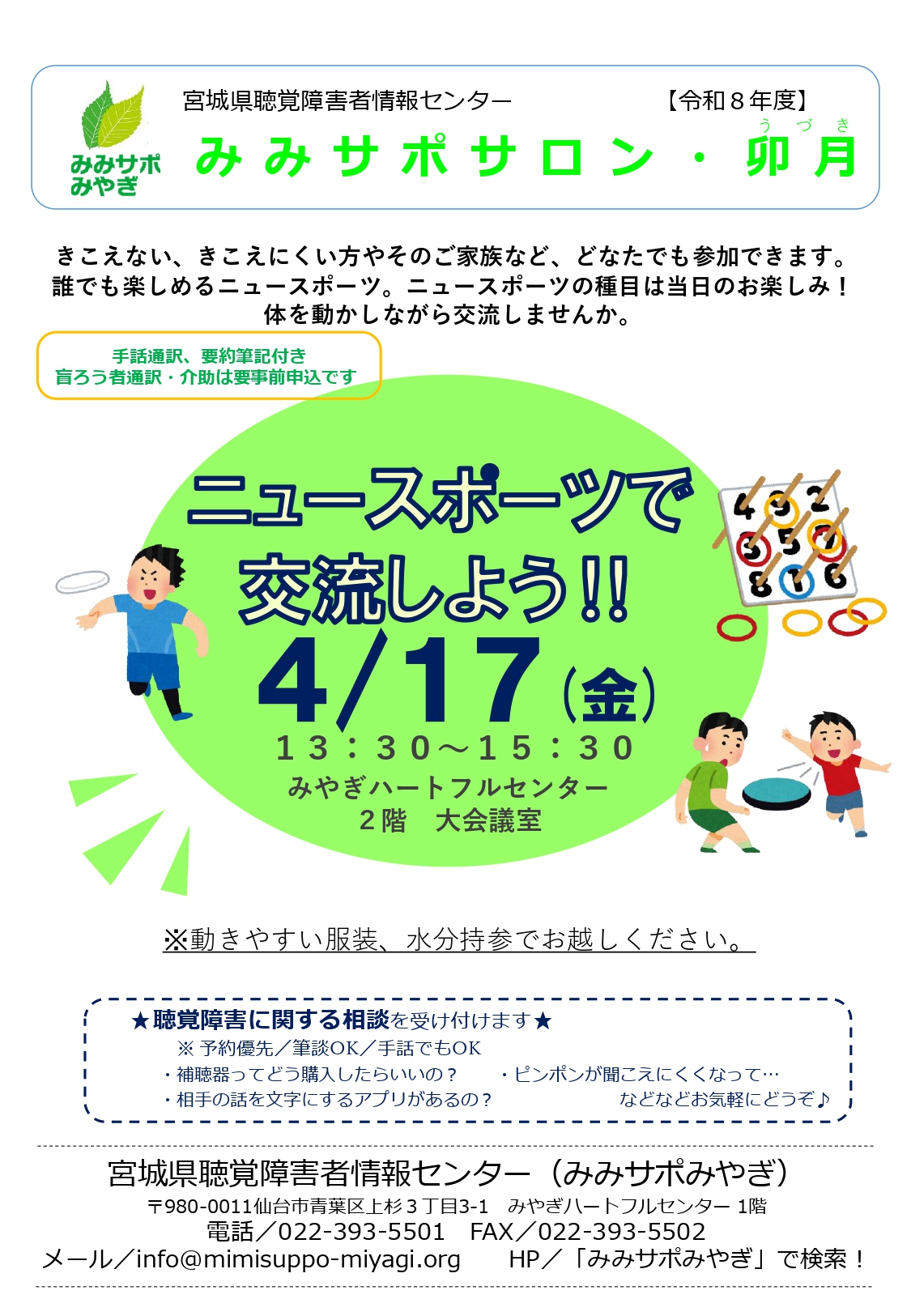 みみサポサロン・卯月「ニュースポーツで交流しよう!!」