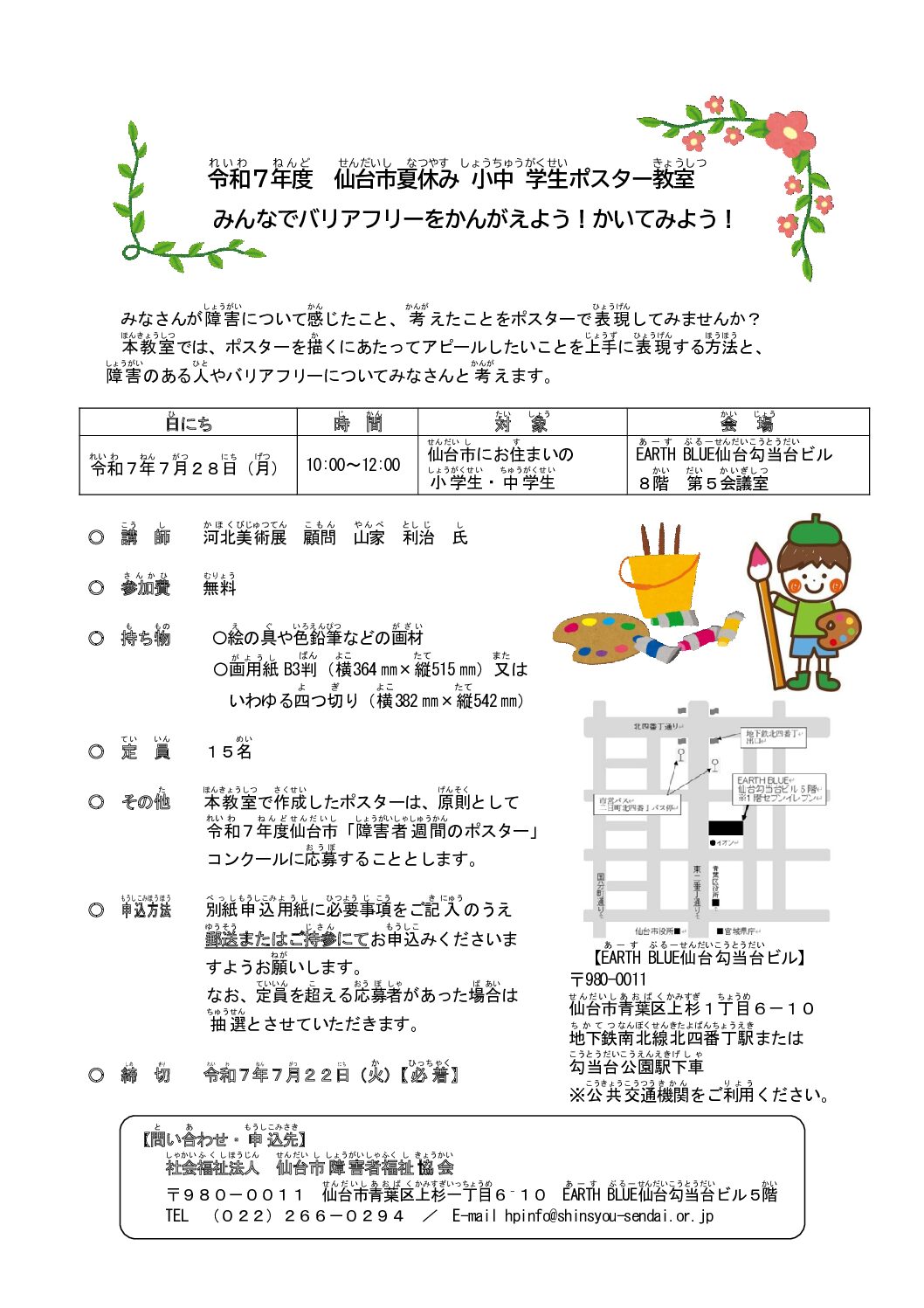 令和7年度仙台市夏休み小中学生ポスター教室―みんなでバリアフリーをかんがえよう!かいてみよう!