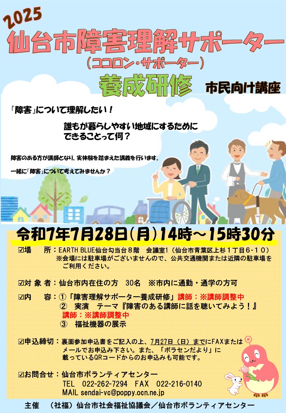 仙台市障害理解サポーター養成研修「市民向け講座」